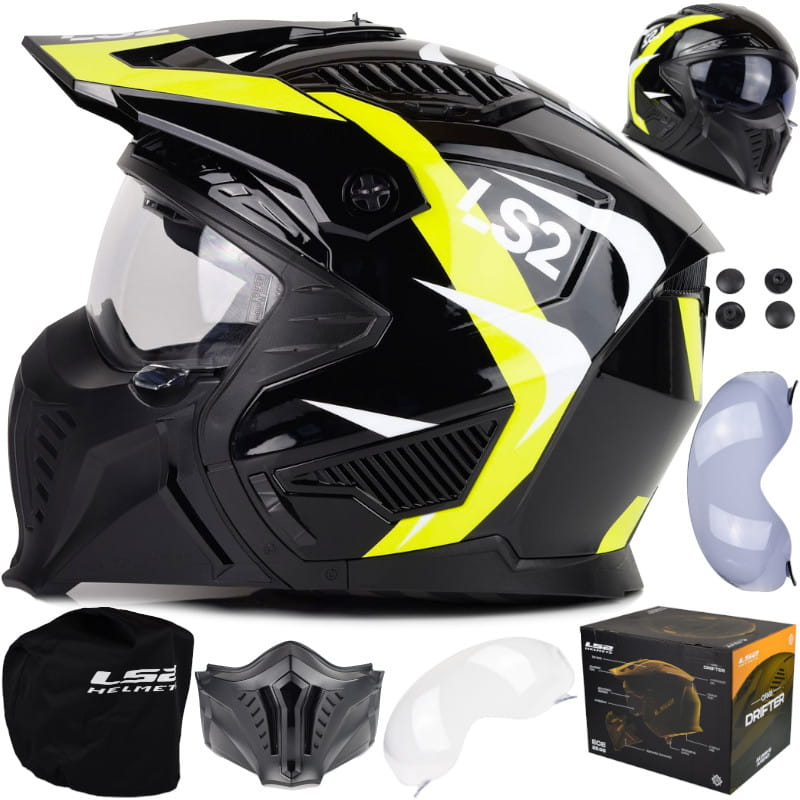 Kask LS2 OF606 Drifter, pokrowiec na kask, odblaskowe naklejki, jasna i przyciemniana szyba.